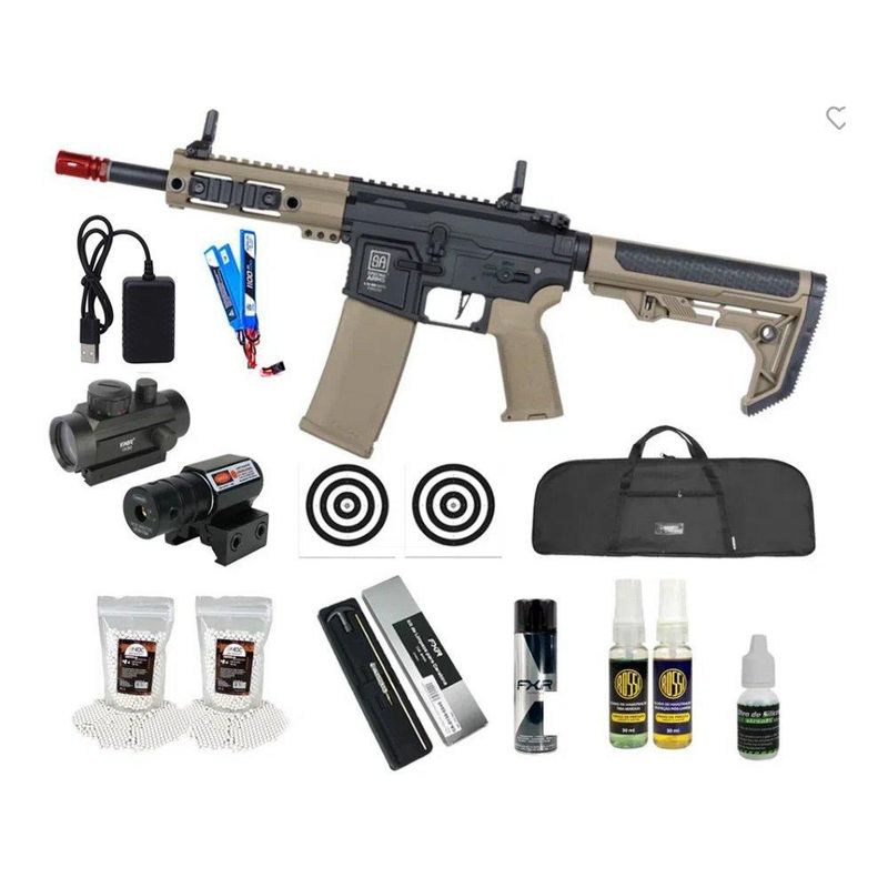 Rifle de Airsoft AEG SA-F04 Half Tan FLEX HAL ETU Gen 2 - Specna Arms + Capa + BBS + Alvos + Red Dot + Óleo + Laser + Desengripante / Anticorrosivo + Kit Fluidos + Kit de Limpeza