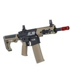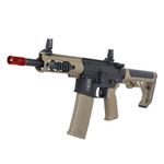 Pensando em conforto e mobilidade, a Specna Arms utilizou polímero de alta densidade e fibra de nylon na construção do corpo, handguard e empunhadura. Essa combinação reduz significativamente o peso total do rifle sem comprometer a resistência estrutural, resultando em um equipamento ágil, fácil de manusear e ideal para partidas prolongadas. O acabamento na cor Half Tan agrega um visual moderno e tático, muito valorizado em ambientes outdoor.
