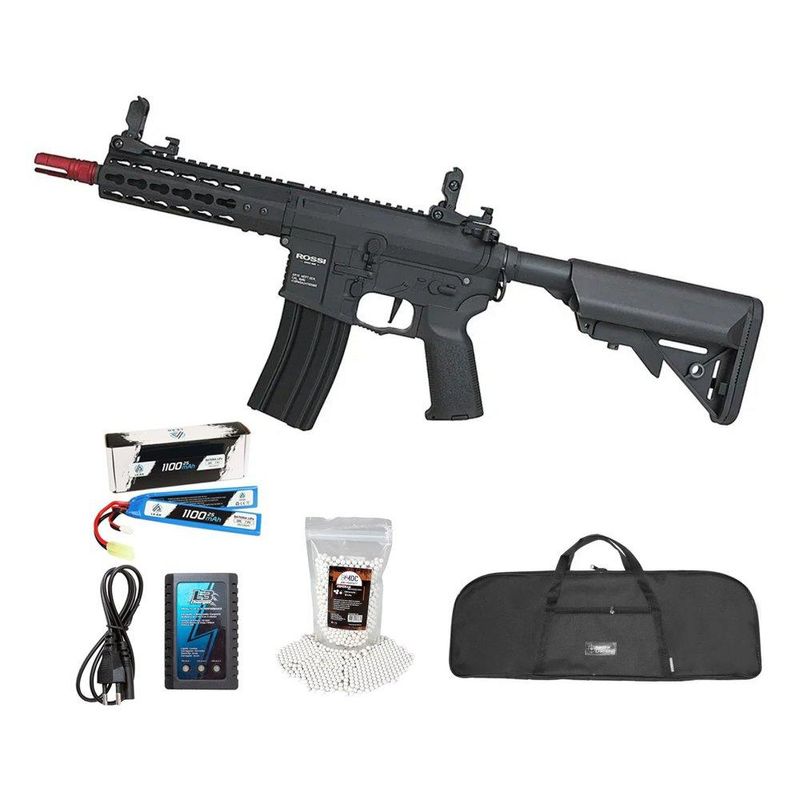 Rifle de Airsoft Neptune AR15 PWD 6,5'' AEG 6mm - Rossi + Bateria + Carregador + BBS + Capa