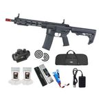 Visando oferecer uma experiência completa desde o primeiro uso, esta versão já acompanha bateria LiPo 11.1V 1100 mAh e carregador USB, permitindo extrair o máximo desempenho do sistema eletrônico e da cadência de disparos logo ao sair da caixa.