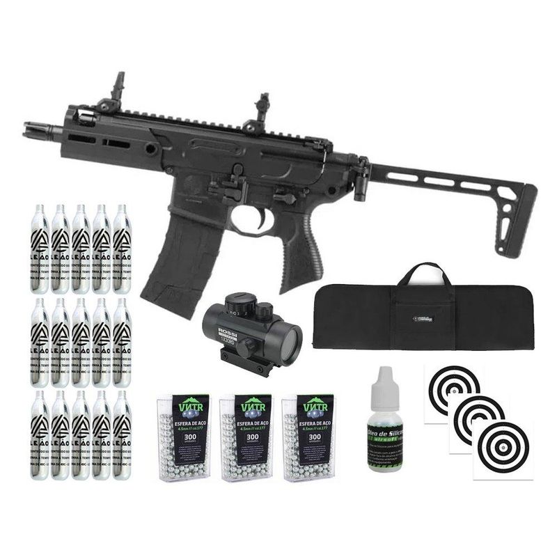 Rifle de Pressão CO2 Sig Sauer MCX Rattler 4,5 Blowback Semi Auto - Sig Sauer + Alvos + Co2 + BBS + Capa + Óleo + Red Dot