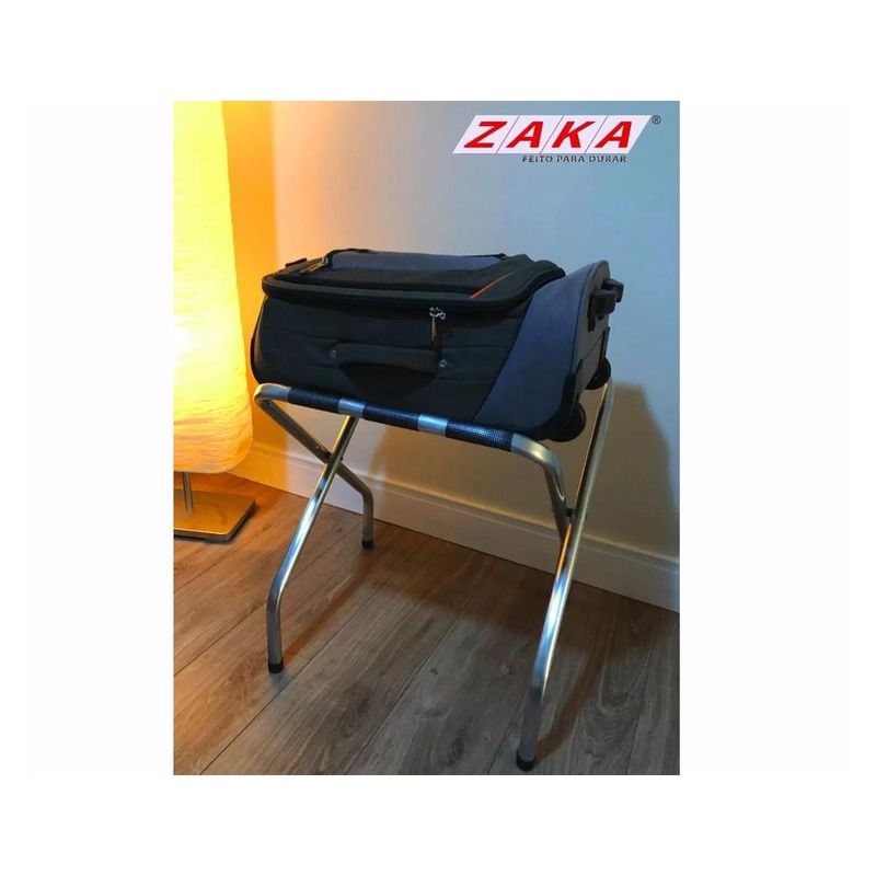 O suporte para mala foi desenvolvido para os hotéis, pousadas e afins que pretendem oferecer mais conforto e praticidade aos seus hóspedes. É um produto que pode ser utilizado também em sua casa ou ambientes de pouco espaço que necessitem de funcionalidade. Produto fabricado em alumínio de alta resistência que não enferruja.